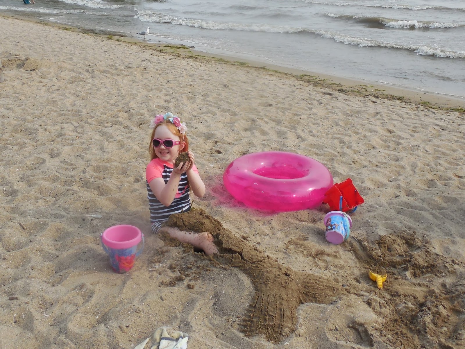 Michelle wanted me to bury her in the sand and she wanted me to make her a mermaid as I often do. It's a bit of a process. It takes a while and she starts getting impatient, wiggling her toes and cracking the sculpture but I managed to get her to stay still long enough to get a couple of photos and she really does look like a mermaid! She tried to bury me once and make me a mermaid but it didn't work out so well. She didn't have the patience to bury my big legs and I started to go numb from the waist down after a while.